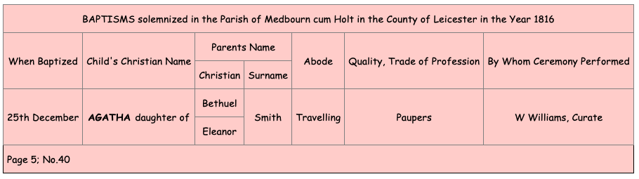 Agatha Smith was the eldest daughter of Barthwell Smith with his first wife Eleanor and her baptism is as follows: